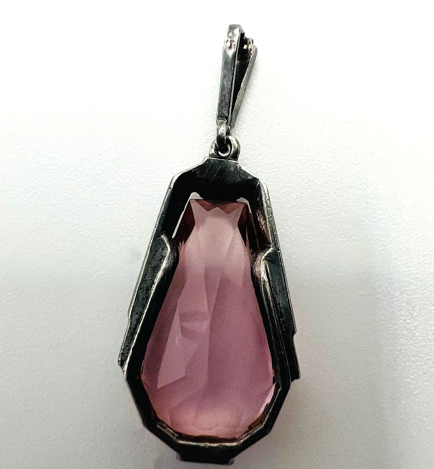 Art Deco pendant in 835 silver with pink spinel | Vintage unique geometric