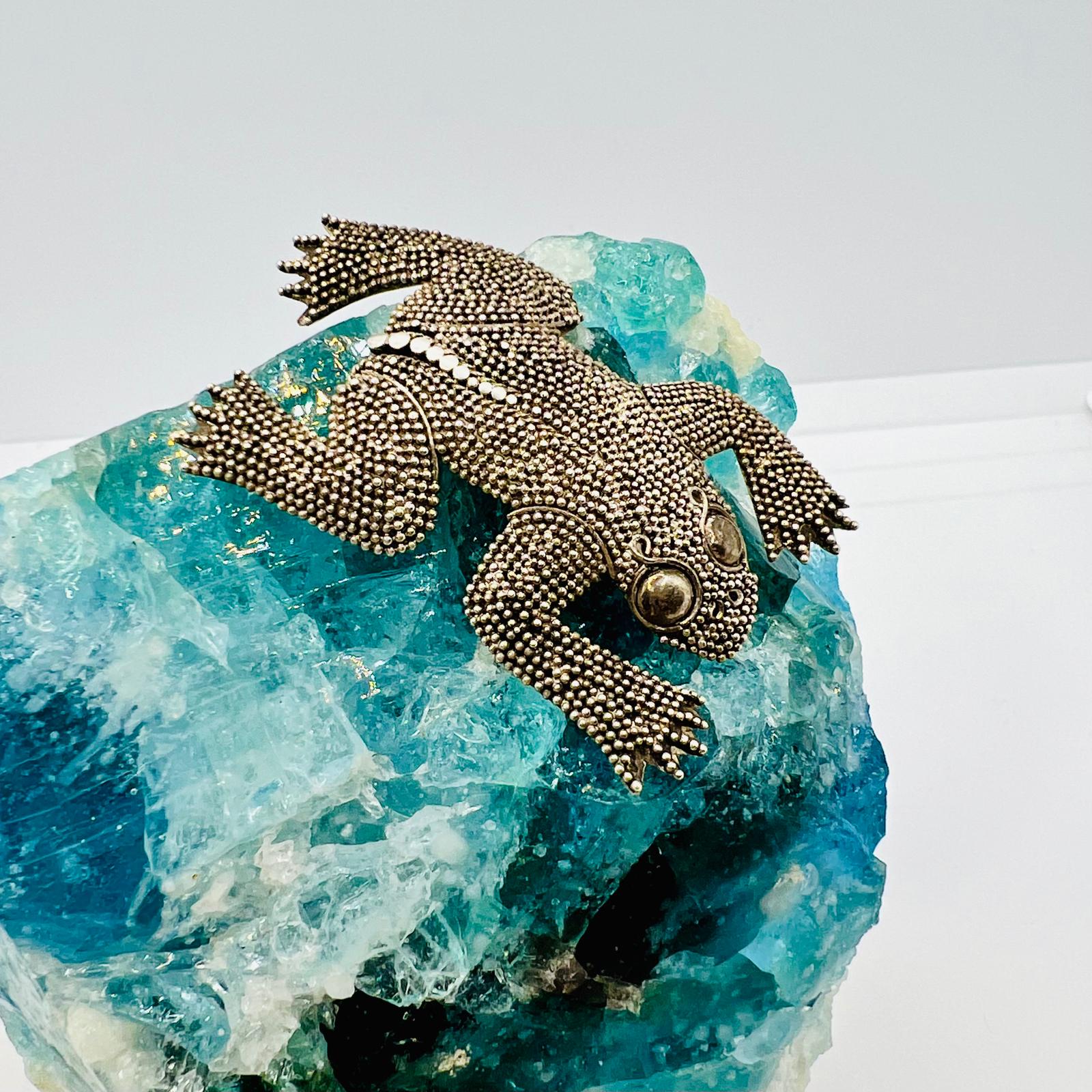 Vintage frog brooch made of 925 sterling silver. Exquisite piece of jewelry.