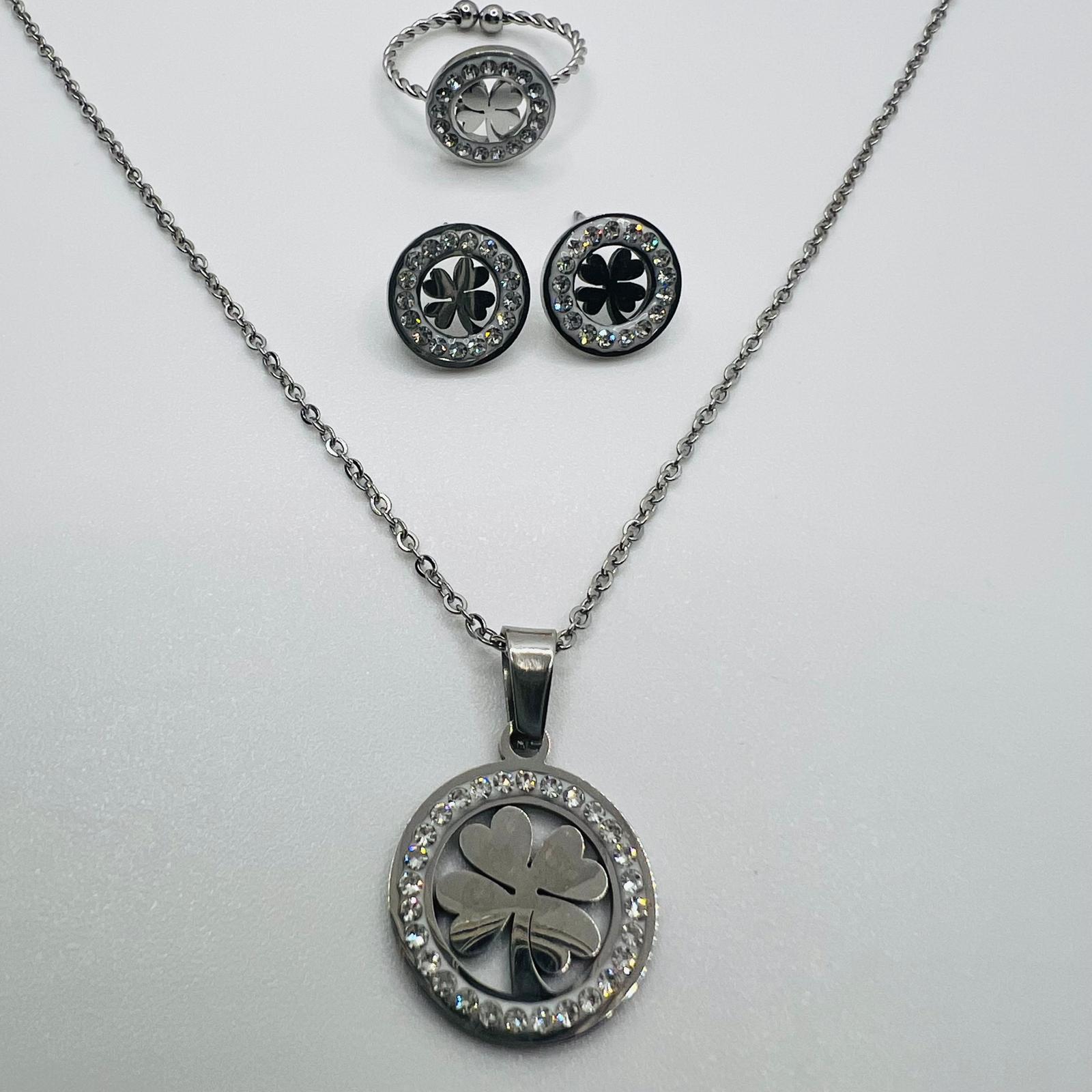 Vierblättriges Glücksklee Schmuck Set 18 Karat Vergoldet Edelstahl mit Zirkon
