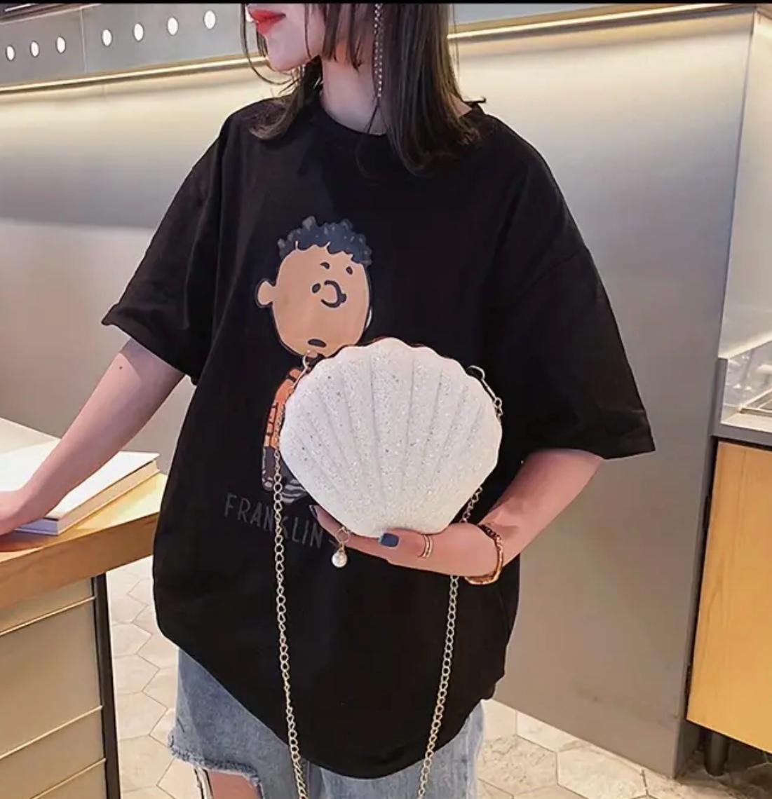 Glitzernde Muschel Clutch – Glitzertasche mit goldener Kette & Perle