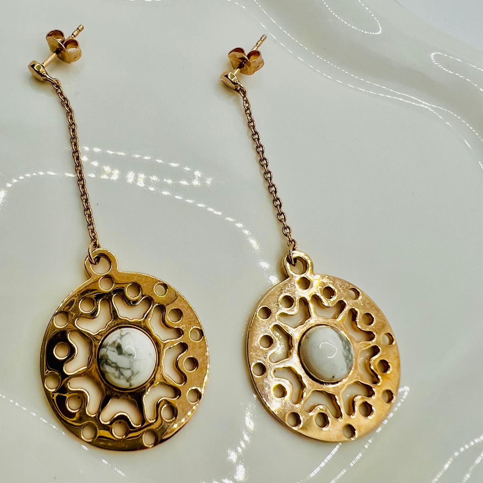 Vintage Rosegold 925 Silber Ohrringe mit Howlith Edelstein