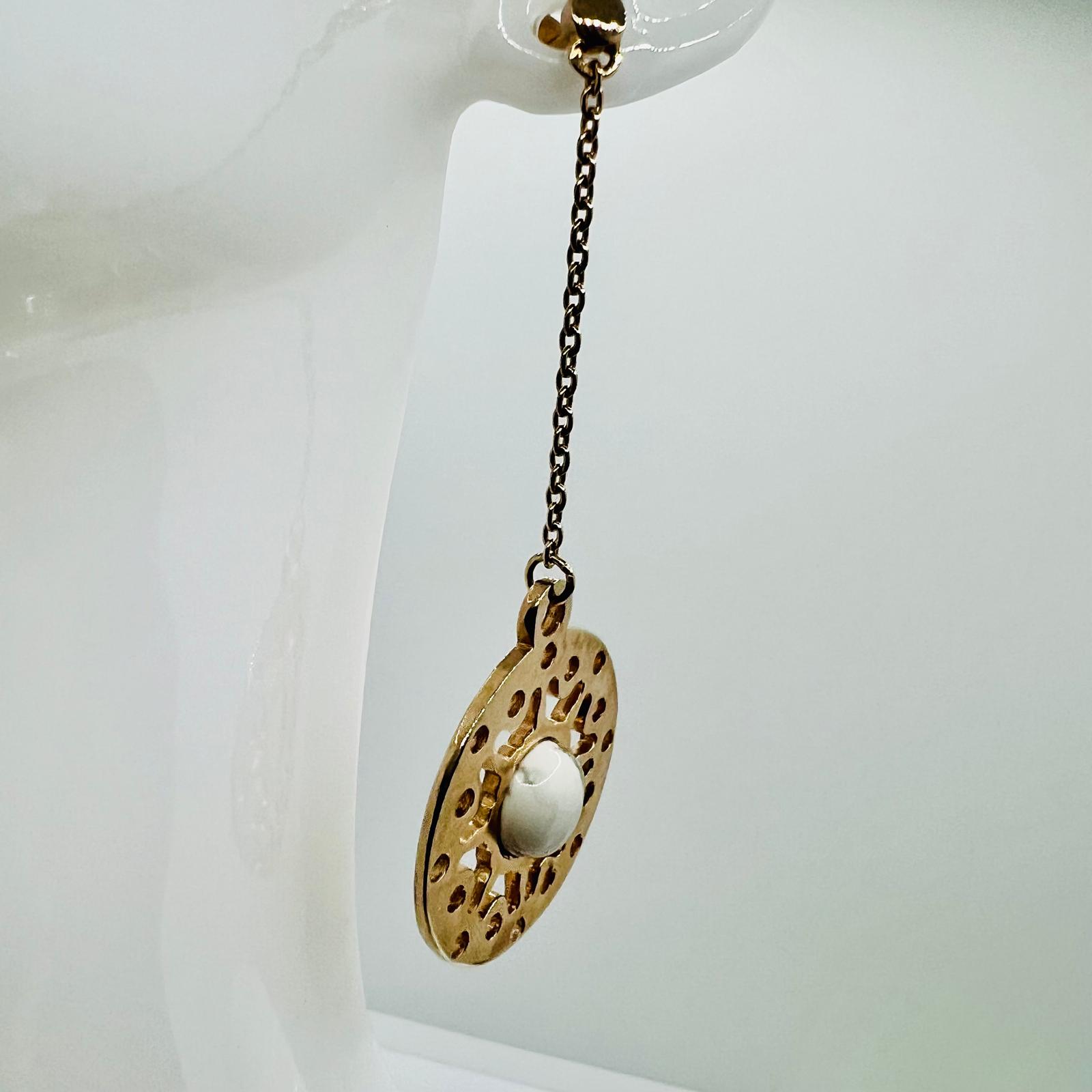 Entdecken Sie die zeitlose Eleganz unserer Designer Vintage Ohrringe aus 925er Silber, veredelt mit einem bezaubernden Roségold Finish. Diese exquisiten Ohrringe bestehen aus einer hängenden Kette, die in einem kunstvollen Ornament endet. Im Zentrum des Ornaments ist ein wunderschöner Howlith Edelstein eingefasst, der dem Schmuckstück einen Hauch von natürlicher Schönheit und Raffinesse verleiht. Die filigrane Verarbeitung und das harmonische Zusammenspiel von Silber, Roségold und Howlith machen diese Ohrringe zu einem einzigartigen Accessoire für besondere Anlässe und stilvolle Alltagslooks. Jedes Detail dieser Ohrringe ist sorgfältig gestaltet, um sowohl klassischen als auch modernen Ansprüchen gerecht zu werden. Verleihen Sie Ihrem Outfit mit diesen Ohrringen einen Hauch von Vintage Charme und luxuriöser Eleganz.