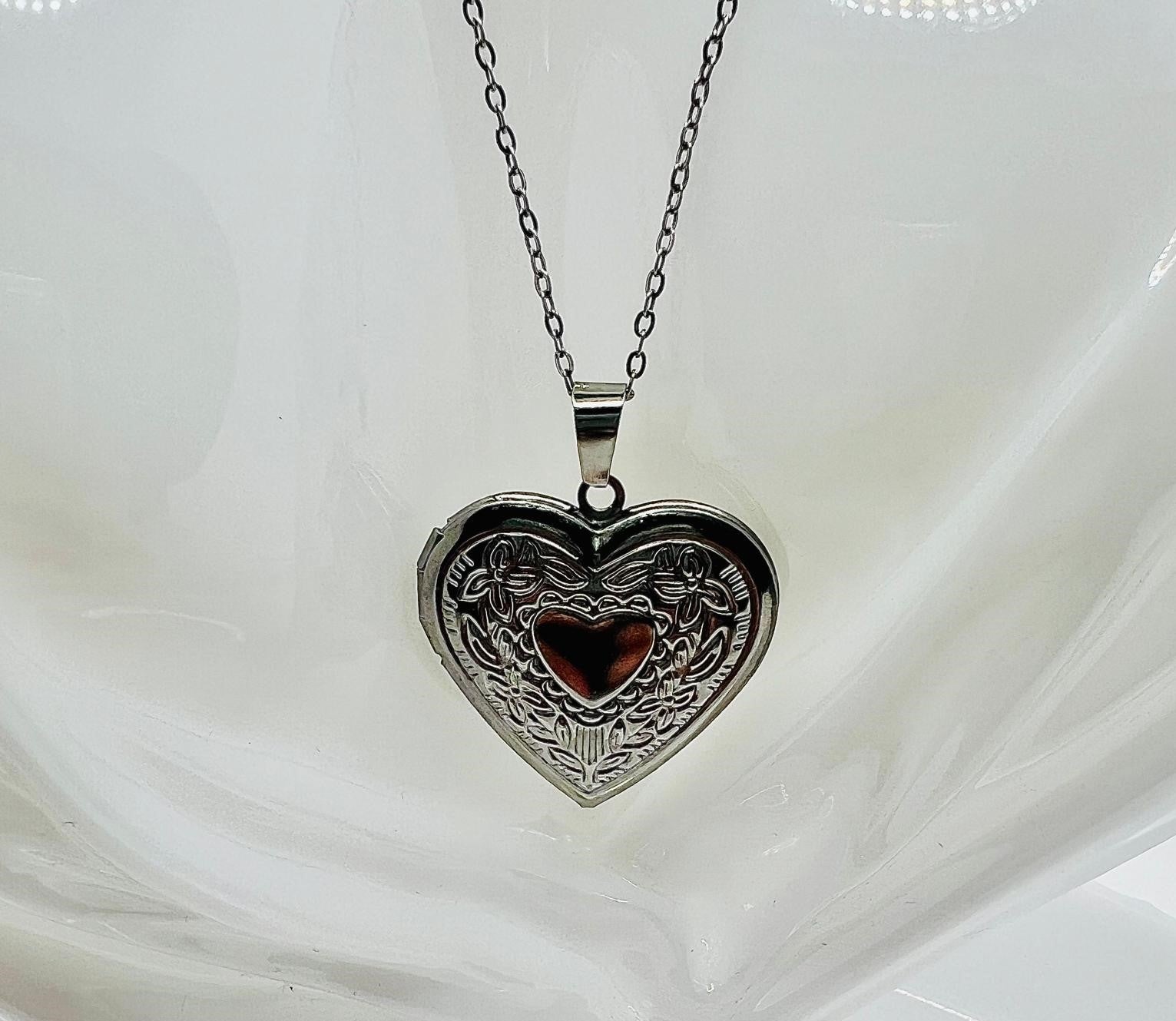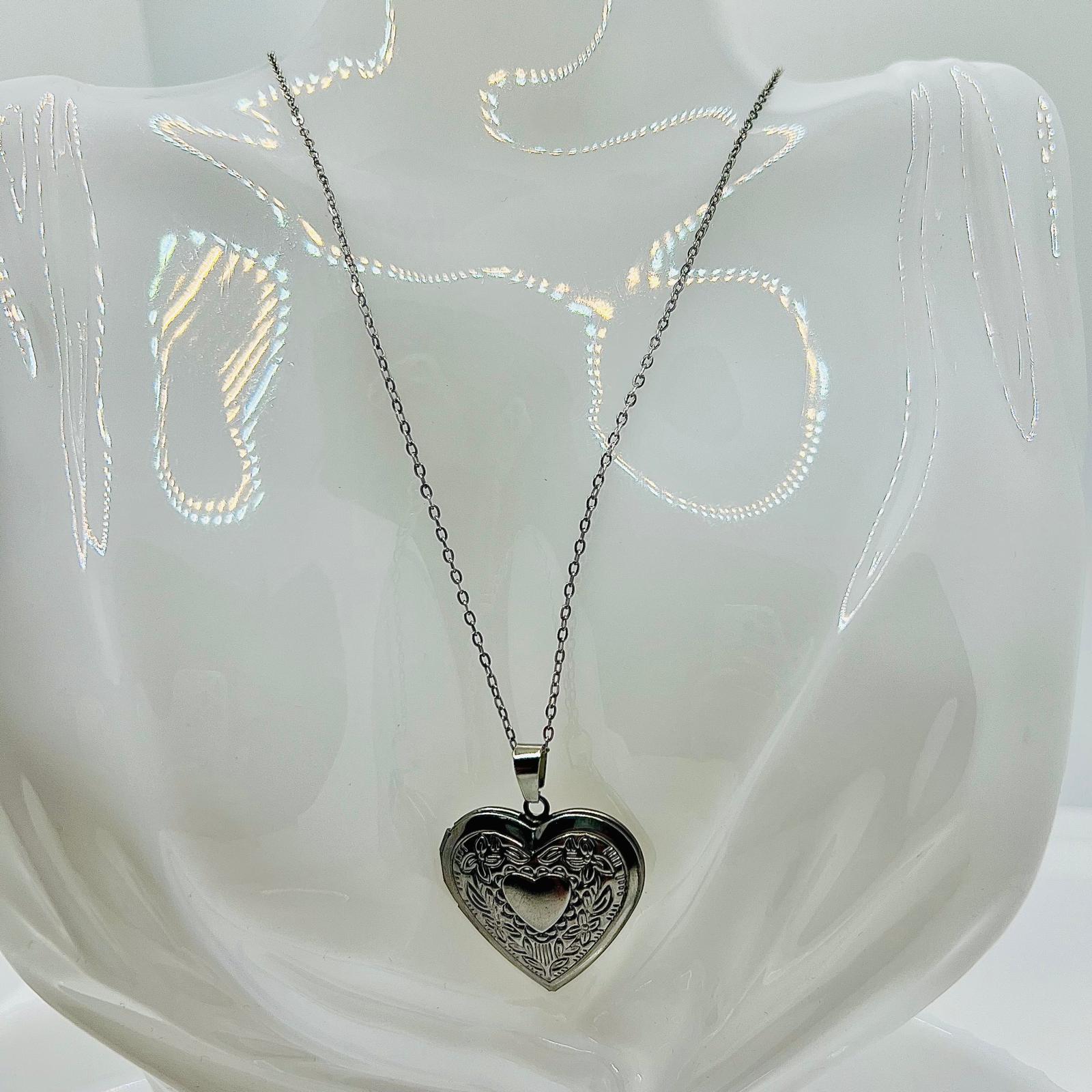 Entdecken Sie die zeitlose Eleganz unseres Vintage Style Herz Anhänger Medaillons. Dieses edle Schmuckstück aus silberfarbenem Edelstahl vereint klassisches Design mit moderner Raffinesse. Mit seiner kunstvollen Musterung und hochwertigen Verarbeitung ist dieses Medaillon das perfekte Accessoire für besondere Anlässe oder als einzigartiges Geschenk. Lassen Sie sich von der Schönheit und dem Charme dieses Herzanhängers verzaubern und machen Sie es zu einem Highlight Ihrer Schmucksammlung.